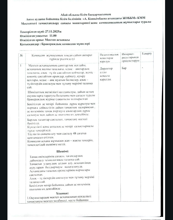 » Бракераж комиссиясының мониторингі